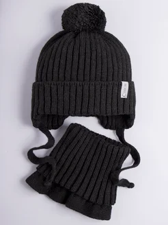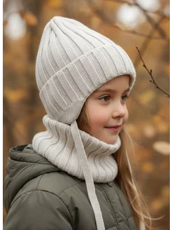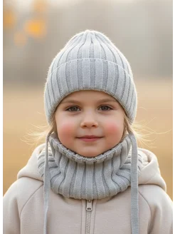 Шапка осенняя детская на завязках и снуд