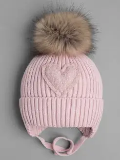 Шапка зимняя вязаная с помпоном для девочки