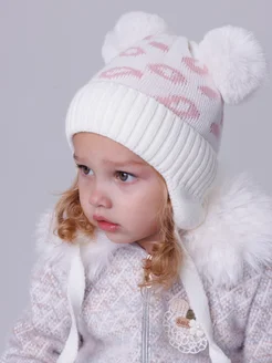 Шапка для девочки зимняя с помпонами на завязках