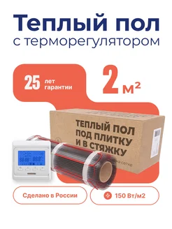 Теплый пол электрический под плитку 2м2 с терморегулятором