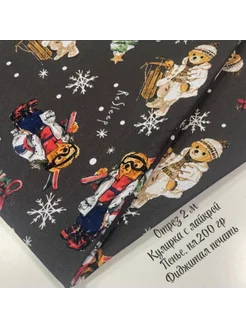 Кулирка с лайкрой Новогодние Медвежата отрез 2 м