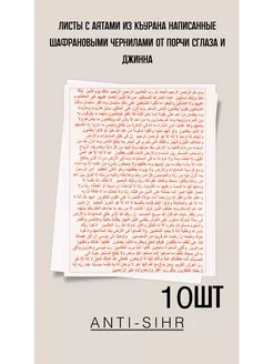 Листы с аятами из къурана от сглаза и порчи 10шт