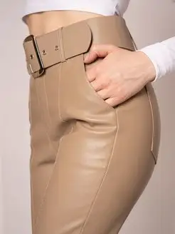 Кожаные брюки бежевые зауженные