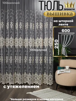 Готовый тюль в гостиную с вышивкой 600х250 см жаккард