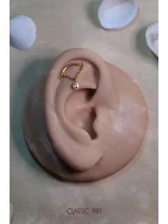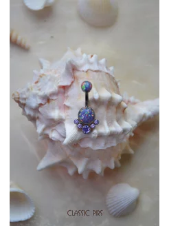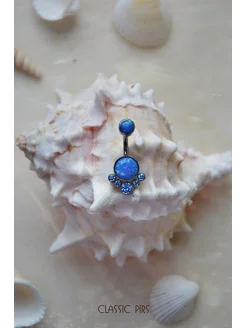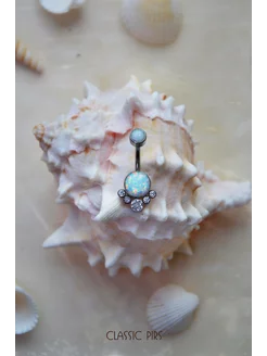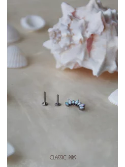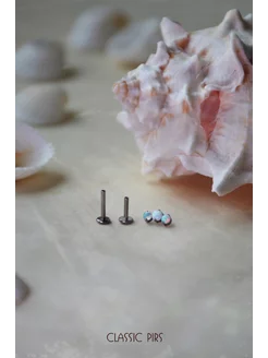 Лабрет для пирсинга уха из титана с синтетическим опалом
