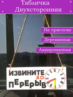 Табличка перерыв с часами на присоске, белая двухсторонняя