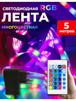 Светодиодная лента RGB с пультом 5 метров многоцветная