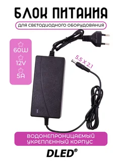 Блок питания для гибкого неона 5.5 Х 2.1mm 60W 12V 5А DC