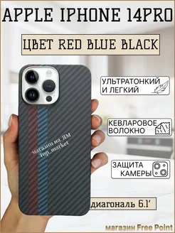 Чехол iPhone 14 PRO MagSafe Kevlar Карбоновый RED BLUE BLACK
