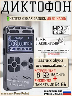 Диктофон V35 память 8GB VOR запись 30ч