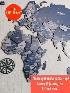 Карта мира настенная из дерева 190х100 новогодние подарки