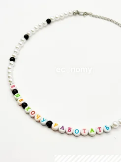 Чокер на шею из бисера - украшение "Я НЕ ХОЧУ РАБОТАТЬ"