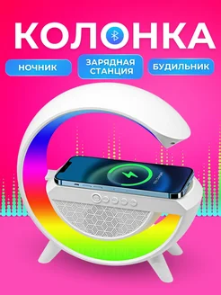 Блютуз колонка ночник с беспроводной зарядкой и подсветкой
