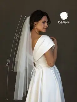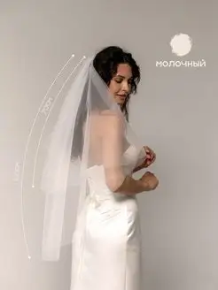 Фата свадебная двухслойная белая непышная длинная с гребнем