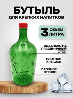 Бутылка 3 литра ТО-35 крышкой зеленая для вина настойки
