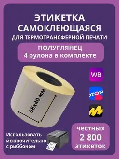 Этикетки самоклеящиеся термотрансферные 58х40 4 шт
