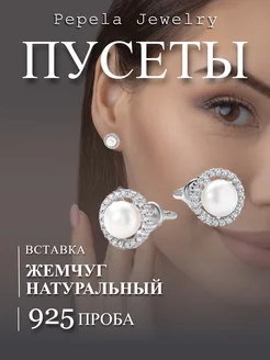 Серьги гвоздики серебро 925 пусеты серебряные с жемчугом