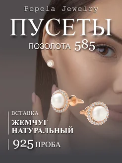 Серьги серебро 925 пусеты гвоздики позолоченные с жемчугом