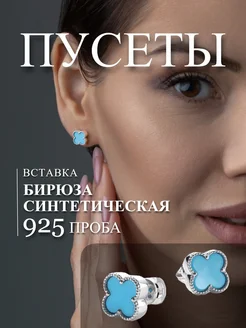 Серебряные серьги пусеты с Бирюзой серебро 925 пробы
