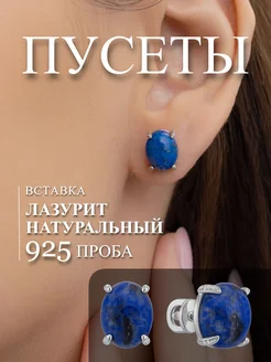 Серебряные пусеты с камнем лазуритом серебро 925 пробы