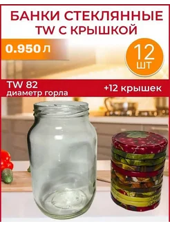Банки стеклянные винтовые 1л с крышками для консервирования