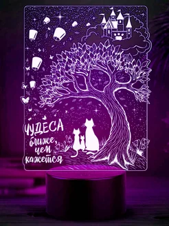 Подарочный 3Д Ночник Светильник "Чудеса ближе, чем кажется"