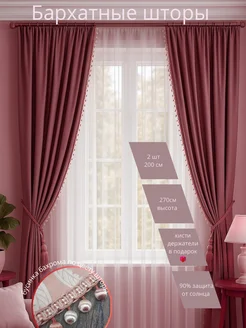 Бархатные блэкаут шторы для спальни с бахромой