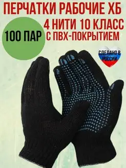 Перчатки рабочие хб строительные черные 100 пар