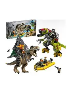 Конструктор Бой тираннозавра и робота- динозавра 716 детали