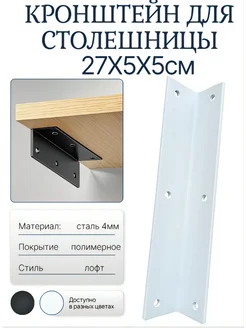 Кронштейн для столешницы 27х5х5см Держатель настенный белый