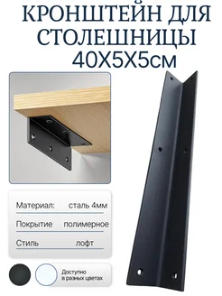 Кронштейн для столешницы 40х5х5см Держатель настенный черный