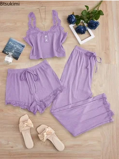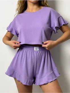 Пижама со штанами в рубчик, домашний пижамный костюм