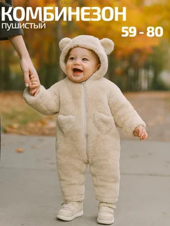 Комбинезон пушистый плюшевый для новорожденных Мишка
