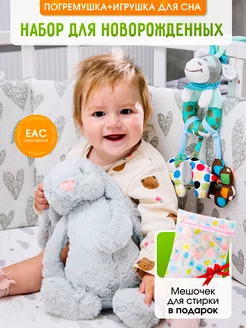 Мягкая игрушка Зайка для сна и погремушка для новорожденных