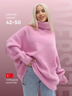 Свитер оверсайз вязаный с горлом удлиненный