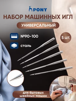 Иглы для швейных машин универсальные №90-100, 5 шт