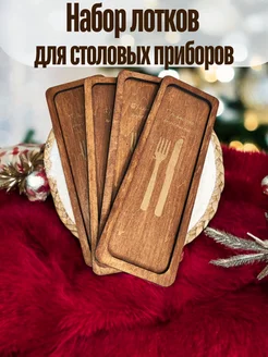 Подставка лоток для сервировки столовых приборов деревянная