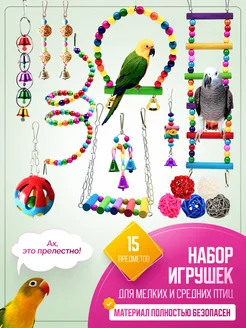 Игрушки для попугаев волнистые жердочка и качели в клетку