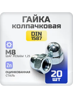 Гайка М8 колпачковая DIN 1597, 20 шт