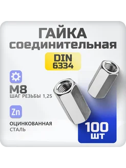 Гайка соединительная М8 100 шт DIN 6334, переходная
