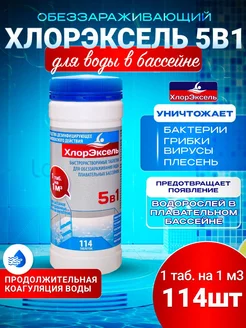 Быстрый хлор таблетки 5в1 для очистки воды в бассейнах 114шт