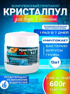 Таблетки для бассейна 200г мульти 5в1 медленный хлор 5 штук