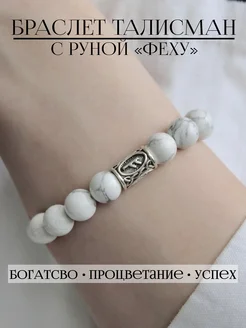 Браслет из натуральных камней с руной Феху
