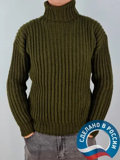 Свитер теплый вязаный с высоким горлом меланж хаки