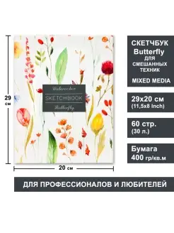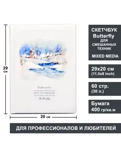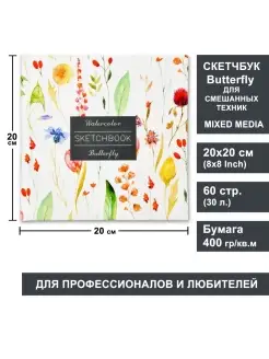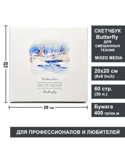 Скетчбук Баттерфляй для акварели 20х20см, 60 страниц
