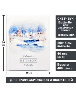 Скетчбук Баттерфляй для акварели 20х15см, 60 страниц