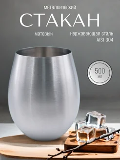 Стакан металлический для напитков, нержавеющая сталь, 500 мл