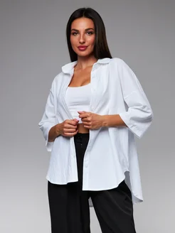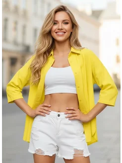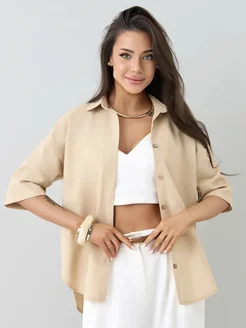 Рубашка льняная бежевая оверсайз с коротким рукавом
