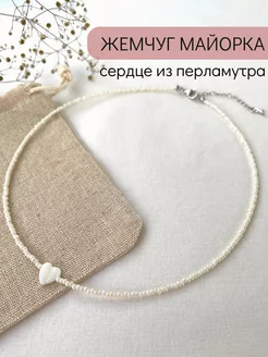 Чокер белый с сердцем перламутр на шею жемчужный майорка