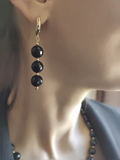 Серьги с черным камнем бижутерия